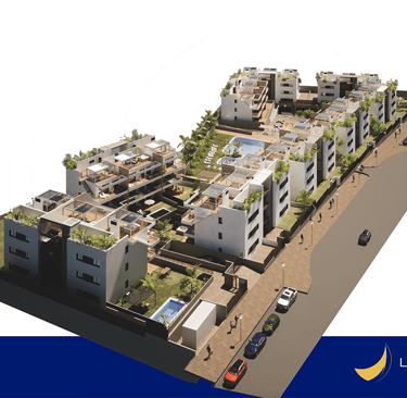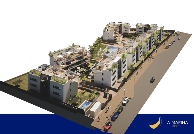 Las viviendas destacan por sus grandes terrazas privadas, algunas con más de 100 m², y solárium en las plantas superiores, ideales para disfrutar del clima mediterráneo durante todo el año.